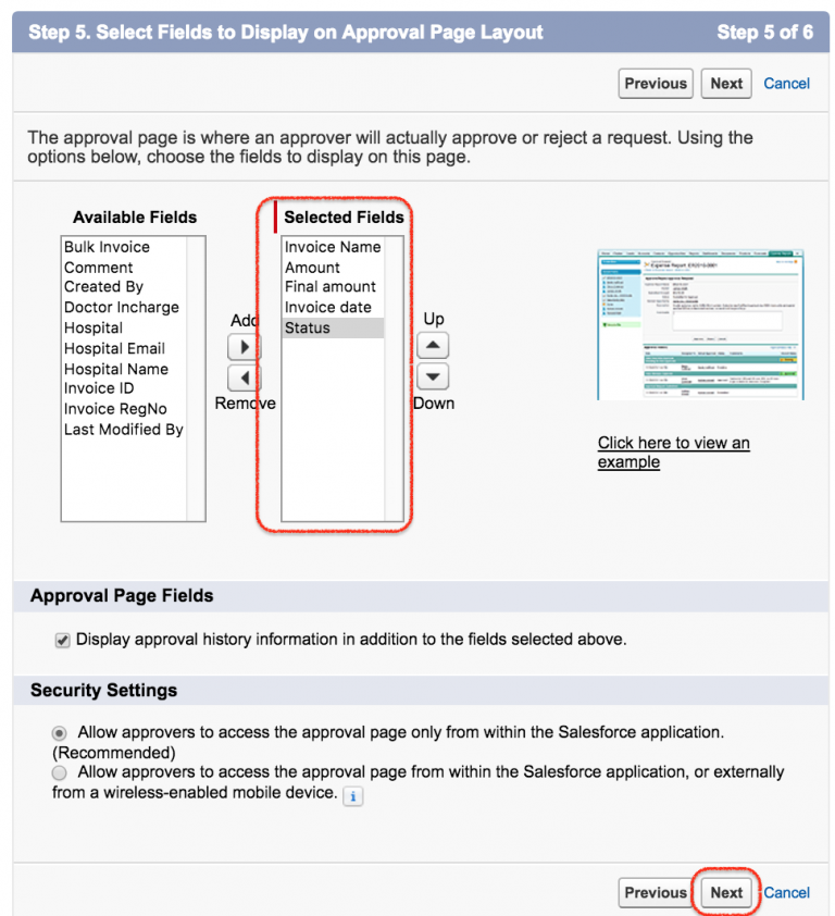 Step 5 : Selecting Fields that be displayed on Approver page layout.