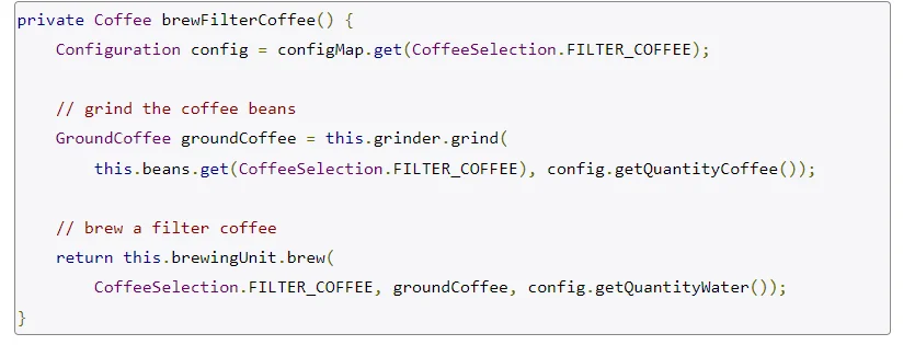 In this model, I made the Abstraction one stride further and executed 3 techniques to brew the various types of espresso. The brew coffee technique, which gets called by the customer, simply assesses the gave CoffeeSelection and calls one more strategy that mixes the predetermined sort of espresso. The brew filter coffee and brew espresso strategies unique the particular tasks needed to blend the espresso.