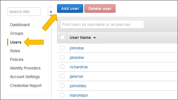 - Choose the name of the user whose access keys you would like to make, then choose the safety credentials tab.