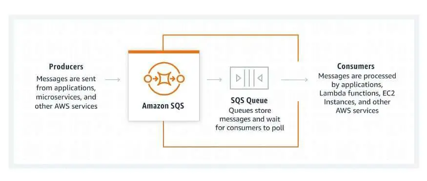 - There are three parts to the SQS messaging system – components of a distributed system, a queue, and messages within the queue. From the given image, you’ll see that a system consists of the many producers (components that generate messages and send them to the queue) and consumers (components that retrieve messages from the queue and process them). Stay tuned with the AWS SQS tutorial to find out more concepts of SQS.