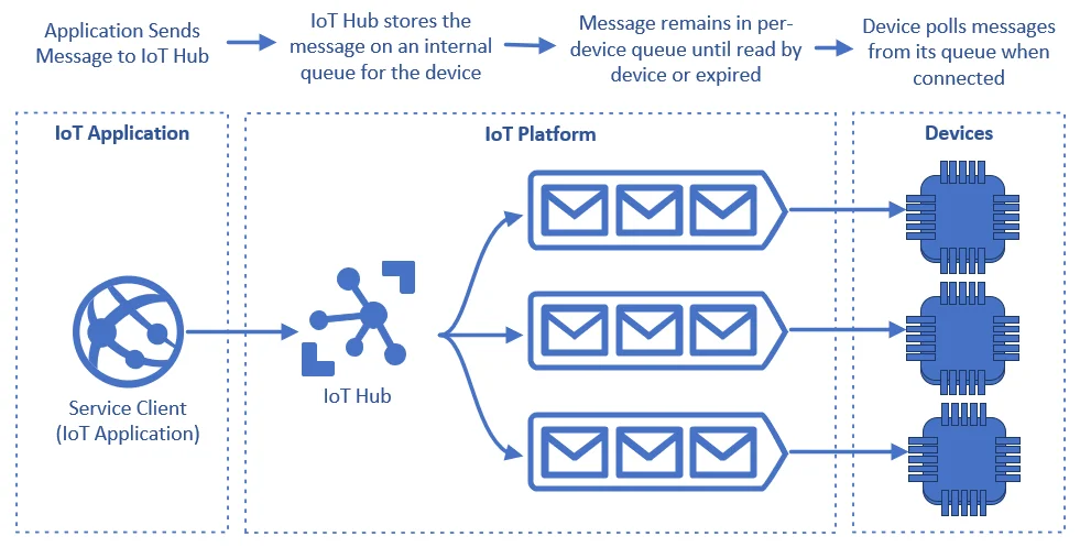 Commonly, IoT gadgets send telemetry from the sensors to move end administrations in the cloud. Be that as it may, different kinds of correspondence are conceivable, for example, a back-end administration sending orders to your gadgets. Coming up next are a few instances of gadget to-cloud and cloud-to-gadget correspondence: