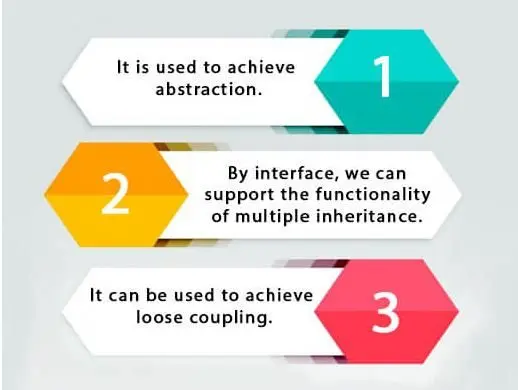 - It helps in accomplishing the polymorphism that permits an item to address more than one kind.