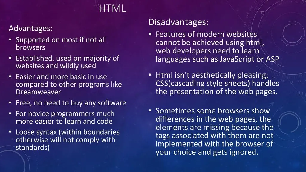 • If you’re thinking about website creation, then HTML5 is a language that you’re probably going to use anyway. Here are the advantages and disadvantages you will be facing if you follow through with that decision.