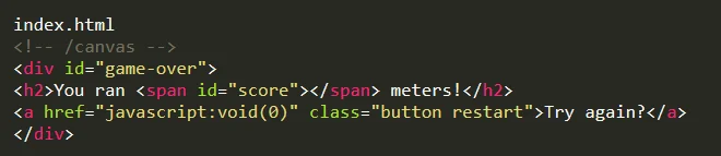 - In the game over screen, we’ll tell the player how far they got and afterward let the restart the game. By utilizing a range tag, we can place the score from the game into the text when the player kicks the bucket.