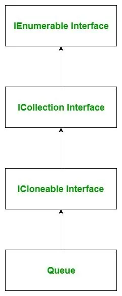 - The Queue class carries out the IEnumerable, ICollection, and ICloneable points of interaction.