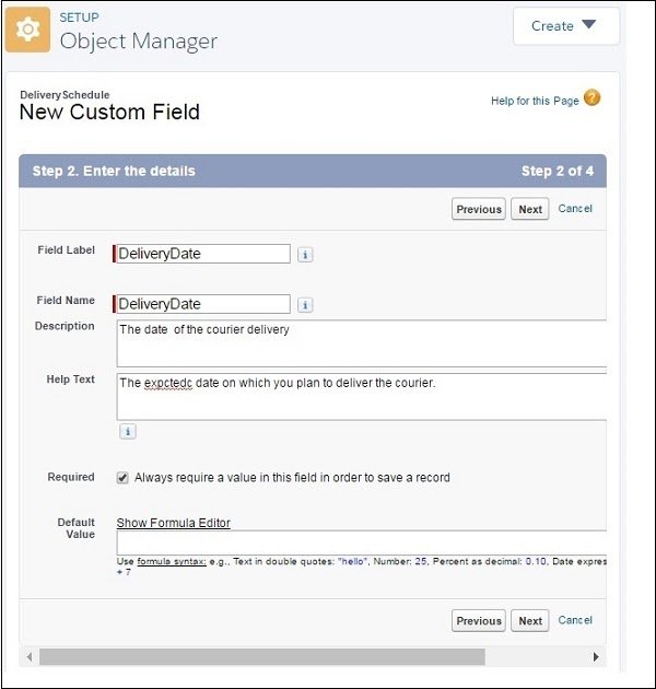 - In this case, let us add a field called delivery date to the custom object named Delivery schedule.