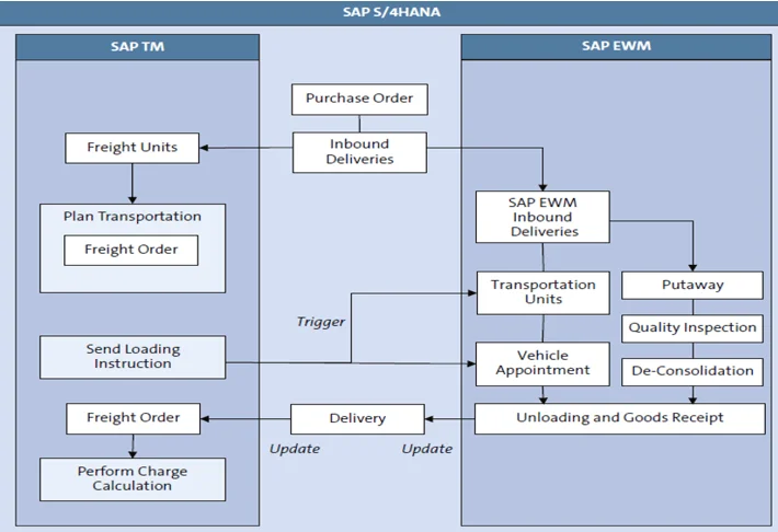 - The inbound cycle begins with the creation of an inbound transport produced using the ASN/purchase demand in the SAP ERP structure. The structure concludes the SAP EWM designing for express settings, for instance, the stockroom collaboration type, and makes the ID (inbound movement) in EWM using the post-dealing with a framework (PPF).