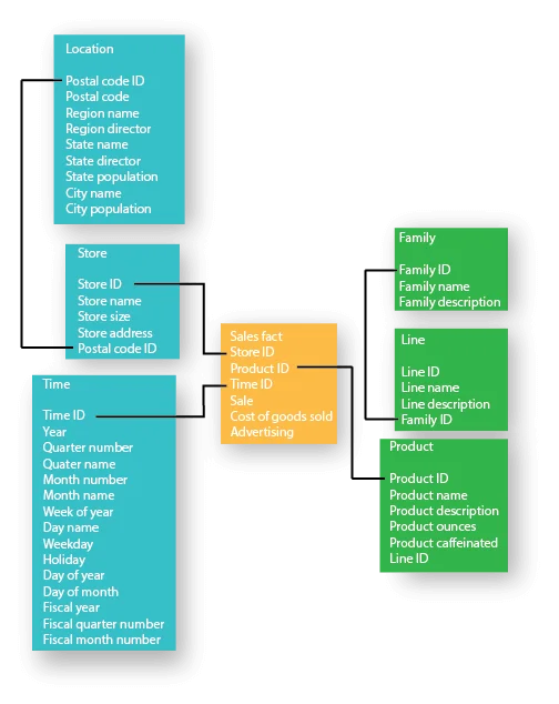 Stacking the information – A virtual distribution center is expected to stack information to a snowflake. The distribution center concentrates information from each record and embeds it as columns in the table.