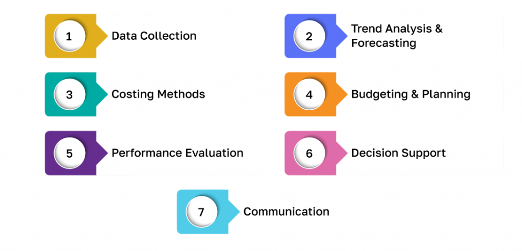 Management accounting encompasses various functions that contribute to the decision-making process. These functions include: