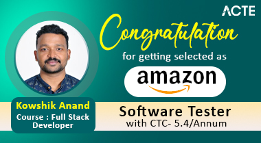 Hi all, This is Veera Raghavan. I completed my Fullstack course from ACTE Technologies, and it has been a great experience. ACTE’s trainers, who are working professionals, helped me learn the latest technologies and provided hands-on experience through real-time projects. The placement support was incredibly helpful, guiding me through every stage of my interview process. I’m excited to share that I got placed as a Software Tester at Amazon! I am truly thankful to ACTE Technologies for helping me kick-start my career in IT.