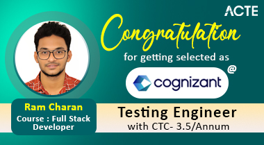 Hi all, This is Ramcharan. I am a BE graduate from the 2018 batch. I have always aspired to work in software testing and was looking for the right training institute to develop my skills. That’s when I found ACTE Technologies. From the very start, my experience was amazing! The trainers are industry professionals, offering hands-on learning with real-time projects. The placement support was outstanding, guiding me at every stage of the interview process. Recently, I got placed as a Testing Engineer at Cognizant, and I am extremely grateful to ACTE Technologies for helping me start my career in IT. Thank you for making this possible!