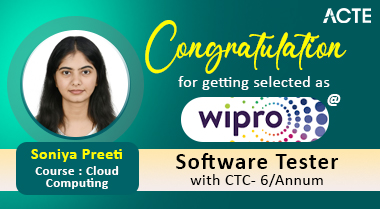 Hi everyone, I’m Soniya Preeti, a Cloud Computing student at ACTE Technologies. I always wanted to work as a software tester and was looking for the right course to enhance my skills. ACTE provided me with the best learning environment, with expert trainers who guided me through real-time projects and practical scenarios. The placement assistance was impeccable, making me feel confident throughout the process. I am happy to share that I have been placed as a Software Tester at Wipro. I would like to thank ACTE Technologies for their excellent training and placement support.