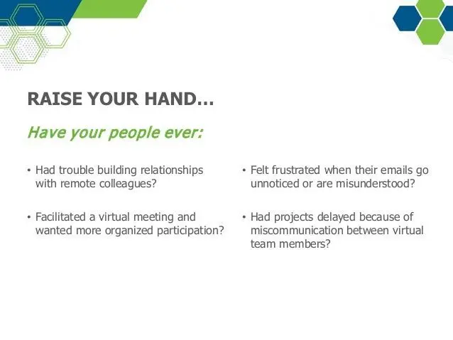 2. A few virtual groups don’t associate up close and personal (when colleagues dwell in various socioeconomics) and a few virtual groups genuinely get together incidentally.