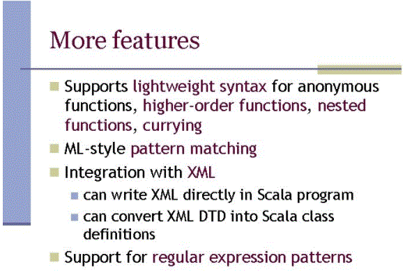 Extensible: Scala offers a combination of a different language approach and that is why it is so easy to integrate the construction of a new language in the form of libraries. The closure is built automatically over the expected type and either method can be used as an infix or postfix operator. New statements can be easily made without extending syntax and editing resources such as large meta.